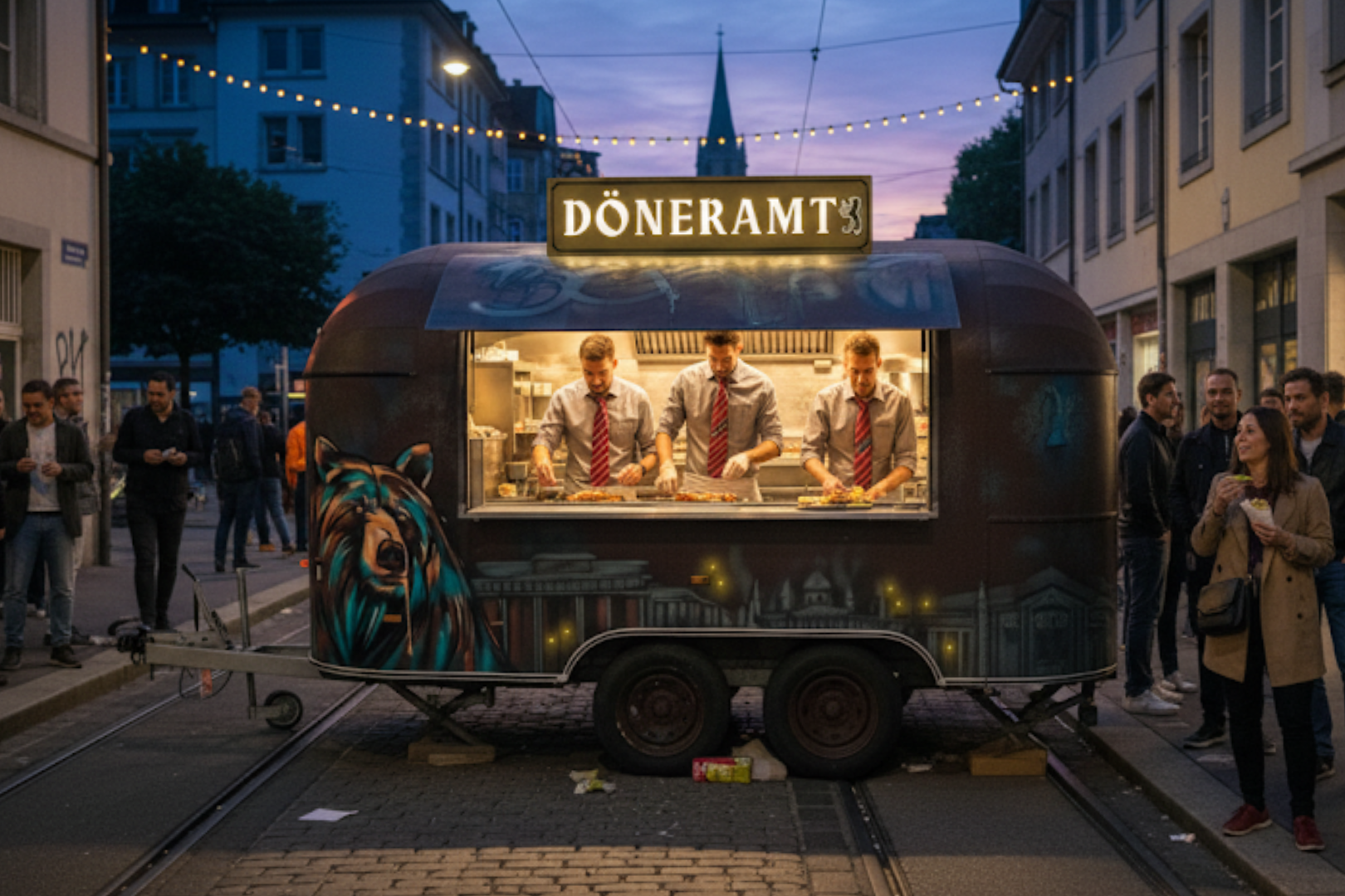 Wir sind kein Imbiss. Wir sind ein Amt. Das Amt für Geschmack und Taschenbrotwesen, in Form eines Foodtrucks. Das DÖNERAMT bringt Berliner Originale nach Zürich – echt, ehrlich und ein bisschen ruppig. Hier gibt’s keine Folklore. Nur amtlich geprüfte Qualität.
