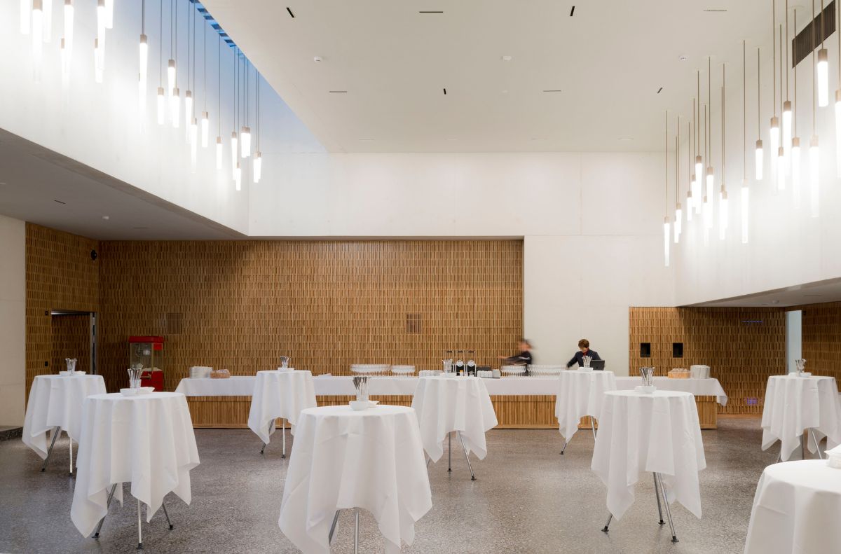 Das tageslichtdurchflutete Foyer eignet sich ideal für Networking, Markenpräsentationen und Apéros.