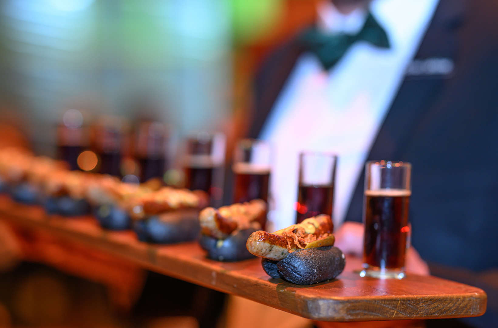 Flying serviert: Kleines Guinness trifft Bangers in Bread, Lammrücken mit Whiskeyjus & veganes Irish Stew.