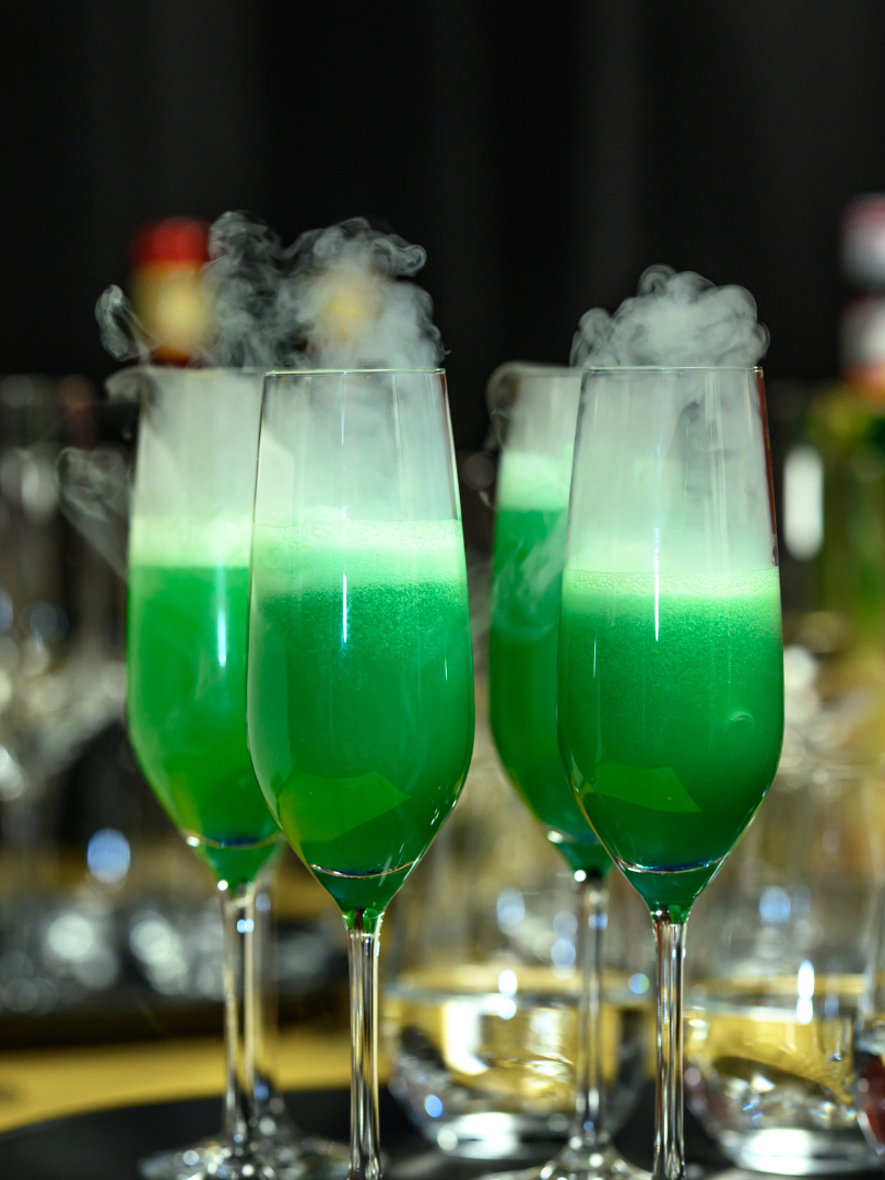 Ein Welcome Drink, der mehr war als ein Getränk – eine rauchende grüne Wiese im Glas. Frisch und visuell aufgeladen mit Trockeneis – der erste Moment Irland.