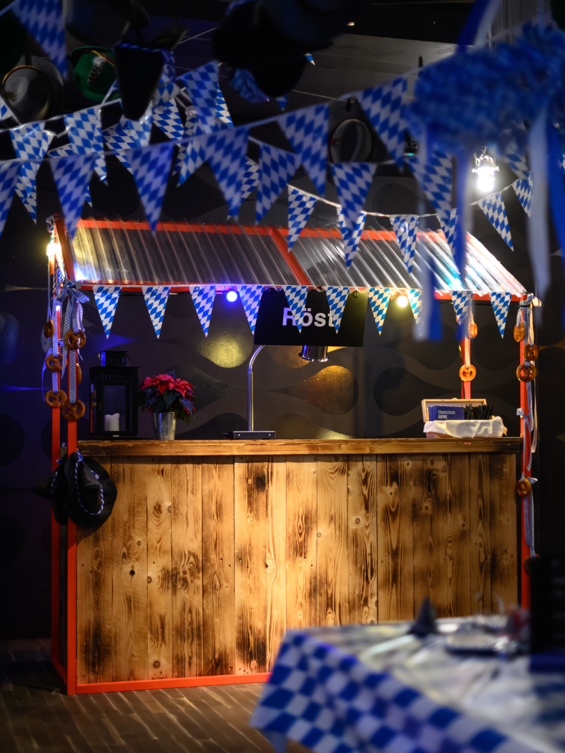 Mit dem Dinner öffnet sich der Raum in eine Vielzahl von Welten – jede Foodstation ein eigenes Kapitel. Im «Oktoberfest-Bereich» gibt es Weisswürste und kräftiges Alpenmax. Weiter geht’s zum «Carnival of Brazil» mit Flanksteak und im «Midsommer» mit gebeiztem Lacht. Zum «Chinese New Year» wird Poulet im Pankomantel serviert.